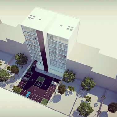 Solução de ocupação proposta para 2 lotes em Maputo, resultando um edifício de linguagem contemporânea, destinado a habitação, integrando uma zona comercial no piso 0 (MZ Residence) e um segundo edifício também com uma imagem moderna, destinado a alojamentos de aluguer de curta duração (MZ Hostel).